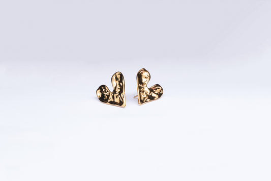 These unique textured gold heart studs are a modern take on a classic symbol. The irregular, molten-like surface of the hearts gives them a distinct artistic feel and a beautiful play of light. Lightweight and stylish, these earrings are perfect for adding a touch of contemporary elegance to your everyday...