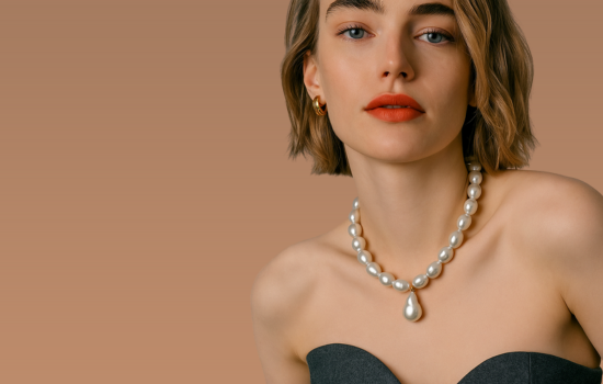 A timeless statement piece featuring lustrous pearls strung together with a bold teardrop-shaped pearl pendant. The subtle sheen and elegant design make it perfect for weddings, festive occasions, or adding a touch of sophistication to everyday outfits. Care: Keep away from water, perfumes, spray, and other chemicals, as well as...