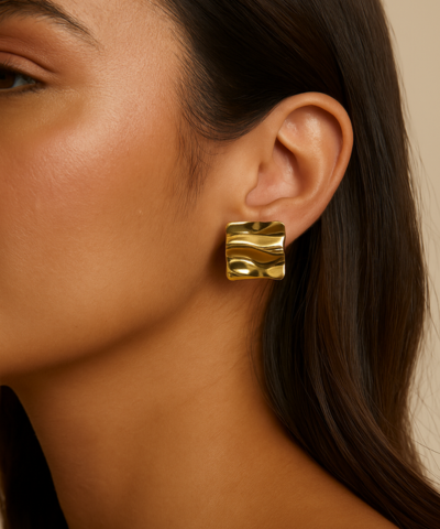 Add a bold yet elegant touch to your style with these round textured gold stud earrings. Designed with a unique wavy surface that reflects light beautifully, these earrings combine minimalism with statement-making charm. Perfect for daily wear as well as festive and party looks. Care: Keep away from water, perfumes,...