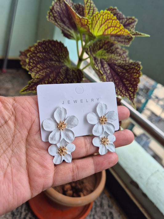 Make a statement with these bold and beautiful floral drop earrings. Each earring features two vibrant, matte pink flowers with delicate gold-toned centers, creating a striking cascade that adds a pop of color to any outfit. Available in both pink and white. These lightweight earrings are designed for comfort and...