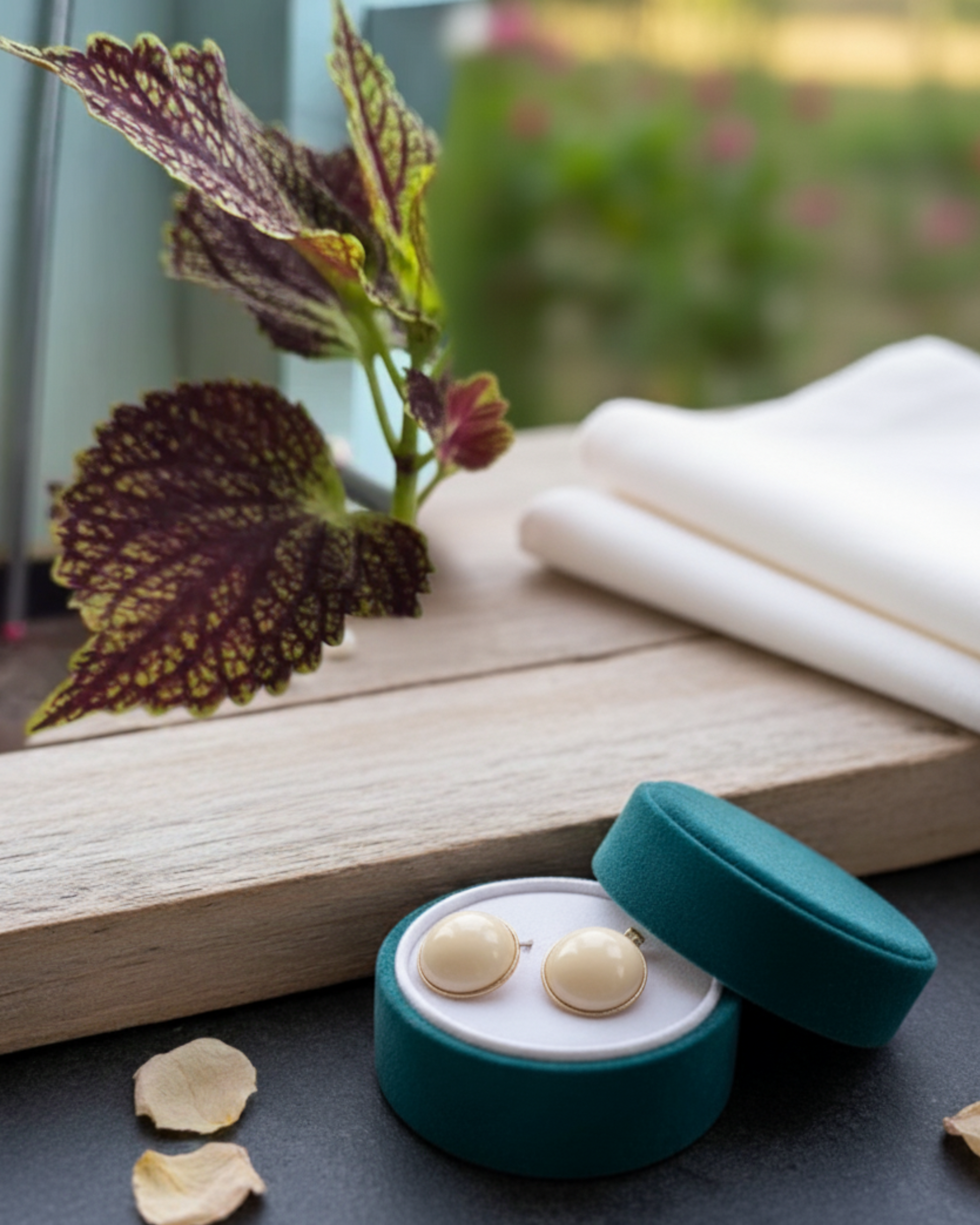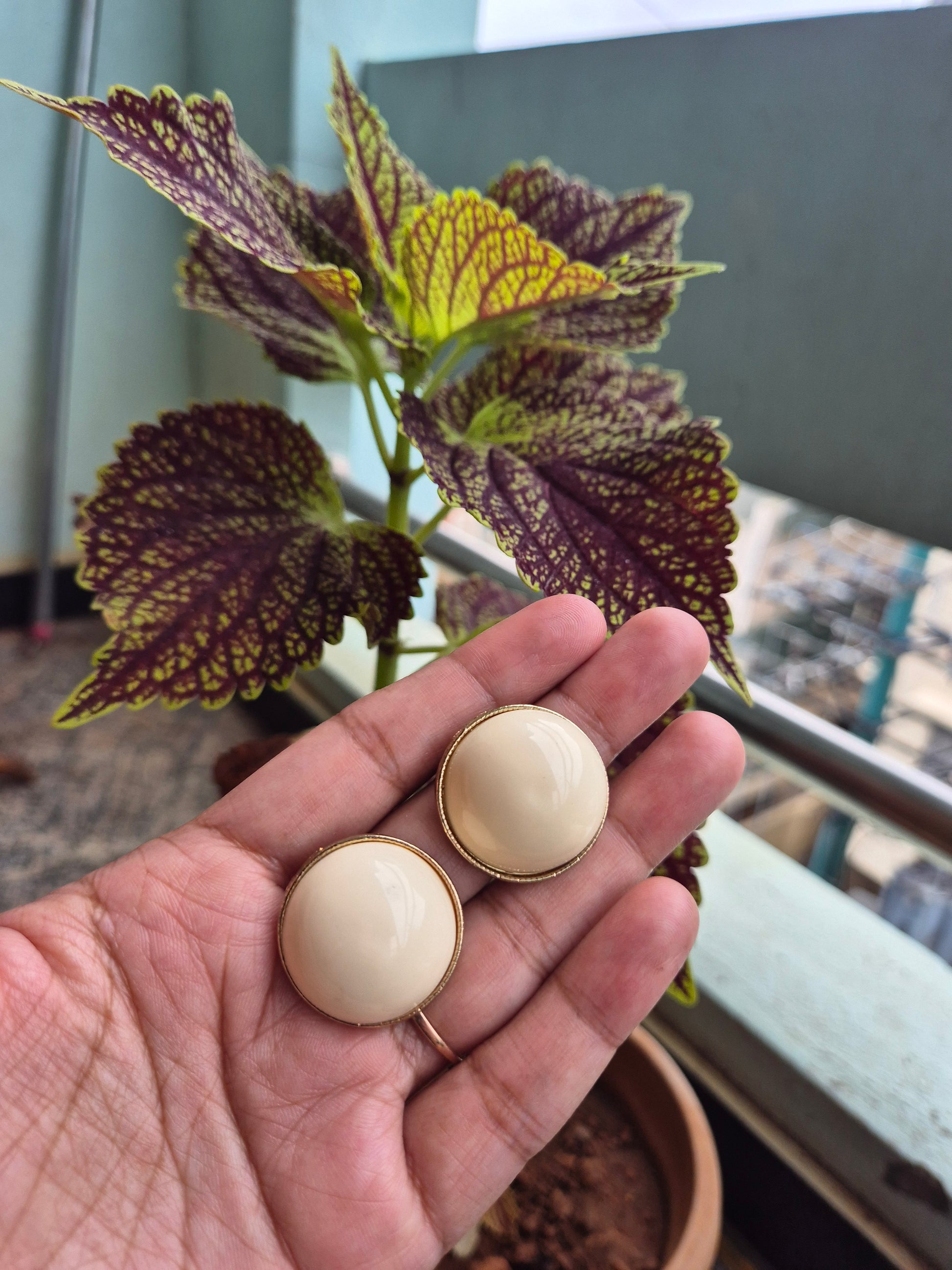 Elevate your style with these timeless classic pearl stud earrings. The smooth, cream-colored dome is framed by a delicate, twisted gold-toned border, creating an elegant and refined look. These versatile earrings are perfect for adding a touch of sophisticated polish to any outfit, from business casual to evening wear.