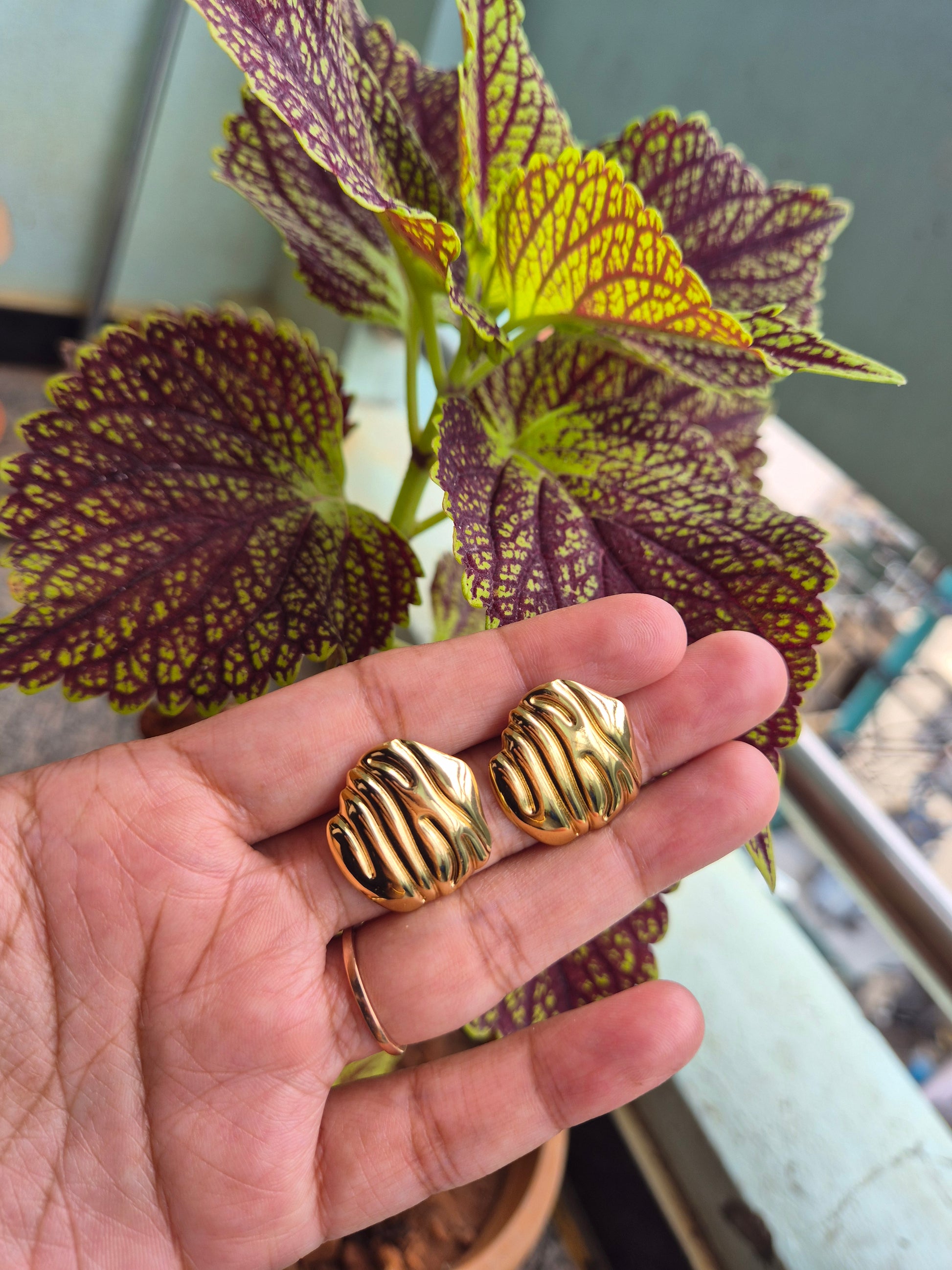 Add a bold yet elegant touch to your style with these round textured gold stud earrings. Designed with a unique wavy surface that reflects light beautifully, these earrings combine minimalism with statement-making charm. Perfect for daily wear as well as festive and party looks.